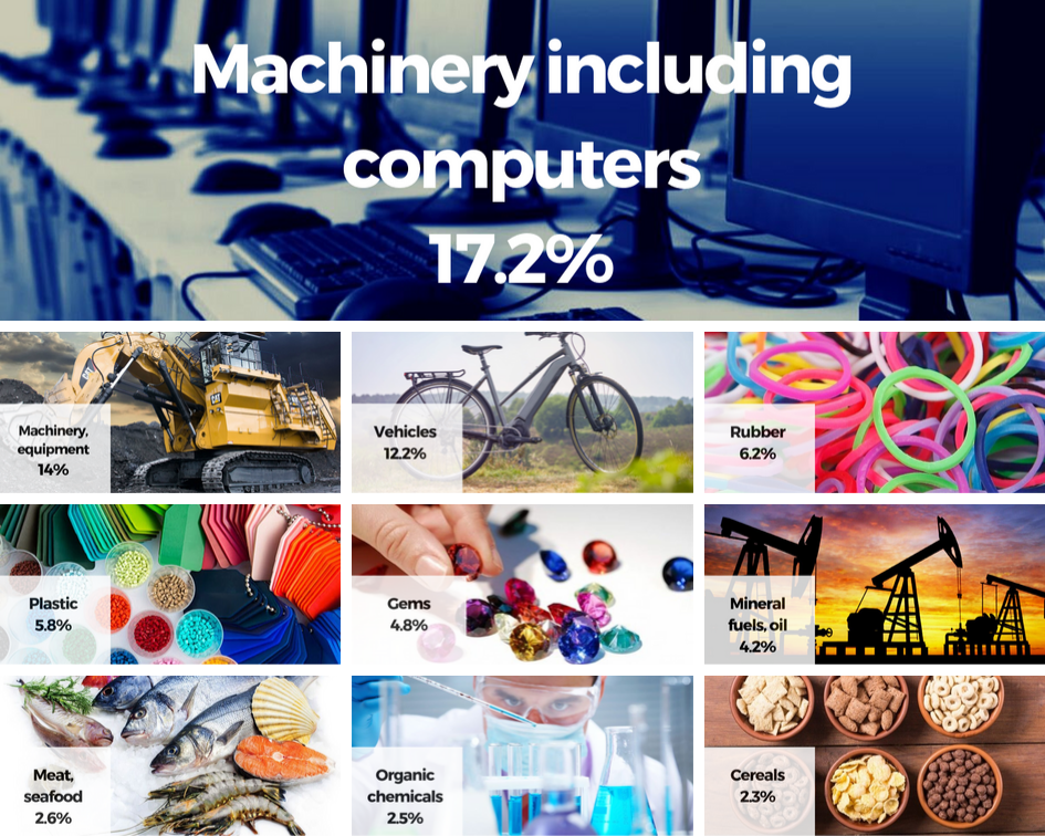 - Plastics, plastic articles: $14.5 billion (5.8%)